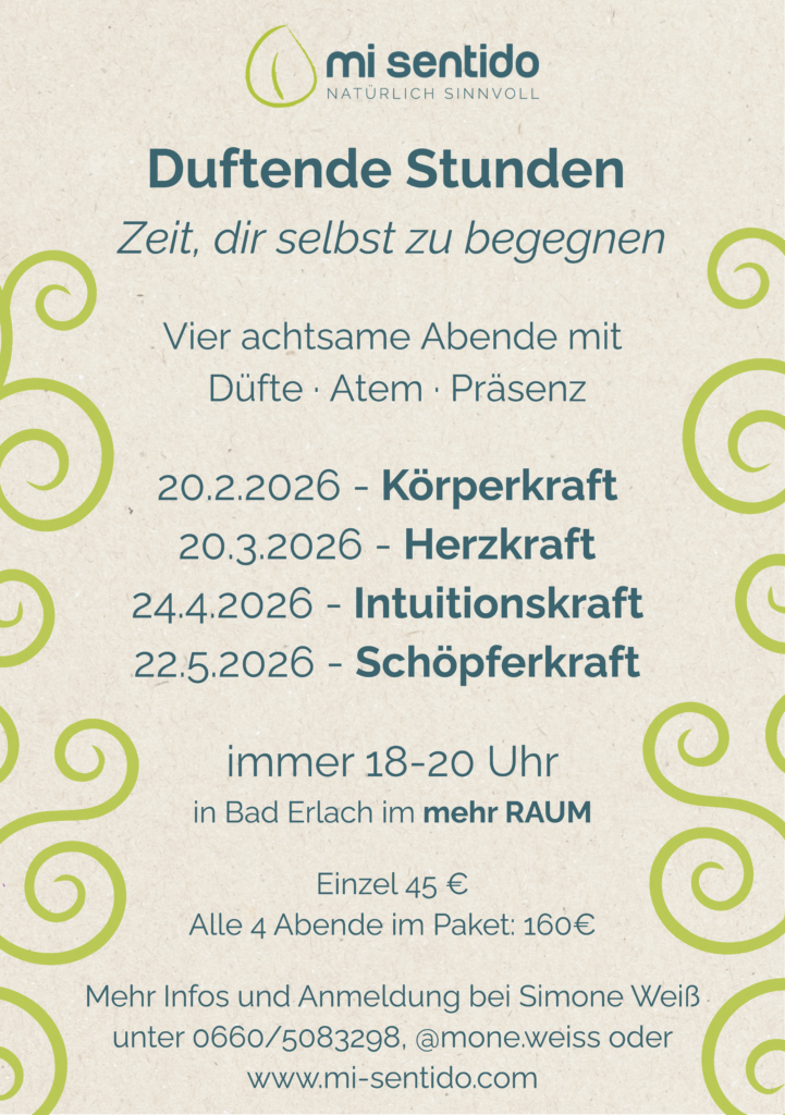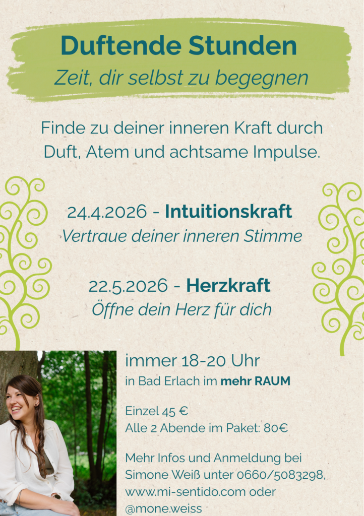 Die Duftenden Stunden sind eine kleine Workshop-Reihe für alle, die sich selbst bewusster begegnen möchten.